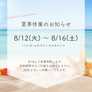 (respect)定休日も含めますと8月10日(日)~17(日)までのお休みとなります。